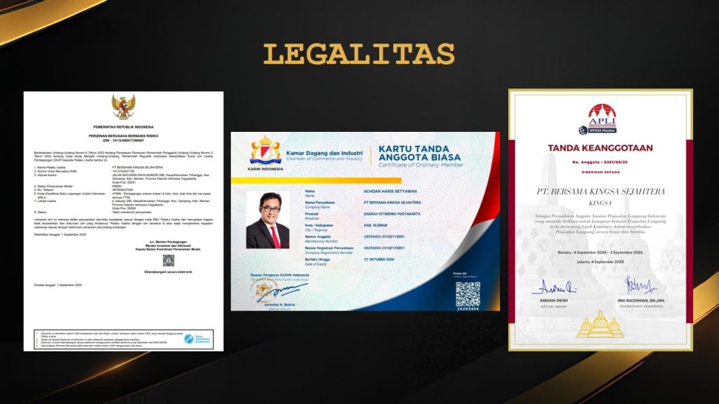 PT. Bersama Kingsa Sejahtera tercatat sebagai Anggota Kamar Dagang dan Industri (KADIN) Indonesia . Keanggotaan ini menunjukkan bahwa perusahaan aktif dan diakui dalam dunia usaha nasional serta berkomitmen mendukung iklim bisnis yang sehat dan berkelanjutan.
